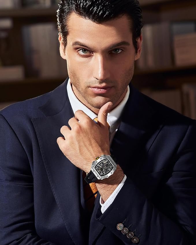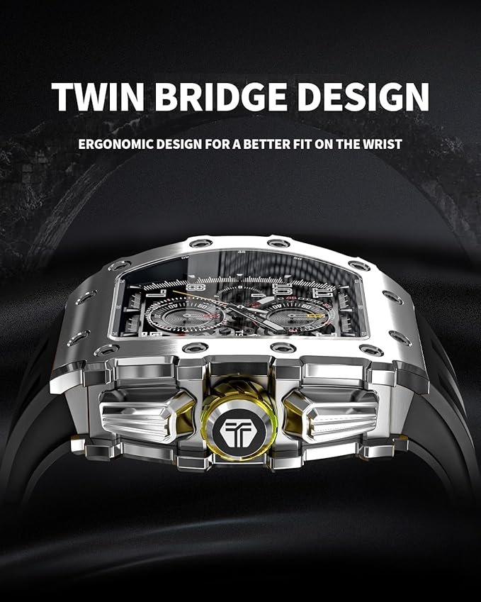 - 👑【 ERGONOMIC DOUBLE BRIDGE DESIGN】TSAR BOMBA watch was born in the Sino-German Force Lab. Based on mechanical mechanics, innovative materials, and precision manufacturing, it integrates oriental aesthetics and strives to make continuous breakthroughs in tech. Adopts an ergonomic double bridge design. Each case has undergone 202 processes to make the watch more fit the human wrist, greatly enhance the matching experience.A visual feast of simple luxury that brings out the best of men’s style.